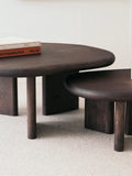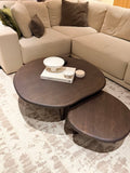 Ovaj set klub stolova napravljen je od hrasta masiva koji ima nepravilan oblik i finu zavrsnu obradu.